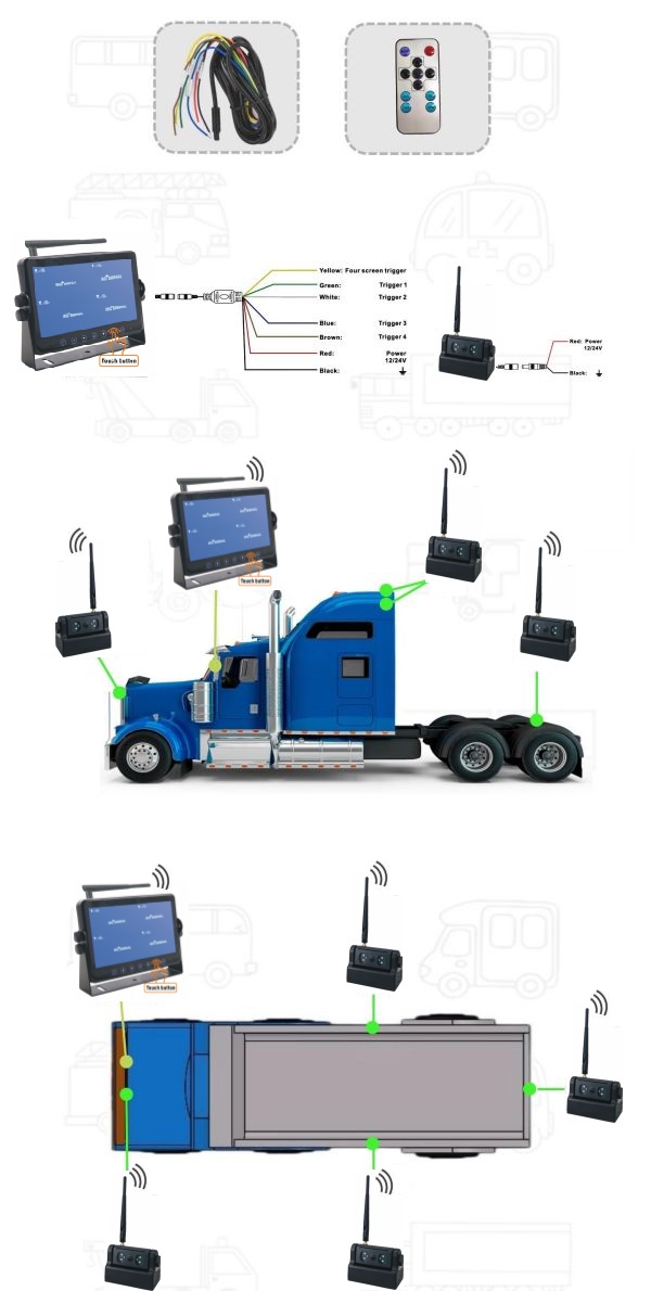 7'' 2.4G Digital 4QUAD wireless monitor camera system,